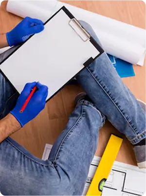 hammer icon in front of a house icon